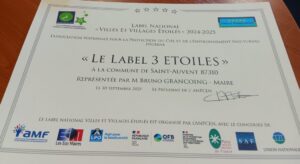 Ce diplôme remis par l'Association Nationale pour la Protection du Ciel et de l'Environnement Nocturne est décerné aux communes qui luttent contre la pollution lumineuse nocturne nocive à tous les êtres vivants (humains, plantes et animaux)
