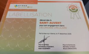 D'un côté la Soirée des Trophées de l'Economie Circulaire organisée par le SYDED, où St Auvent a reçu le "Label commune engagée à l'économie circulaire 1er niveau (sur 3)" pour valoriser les actions mises en place :